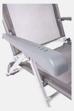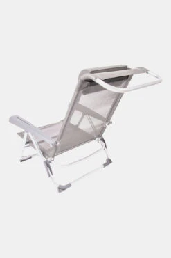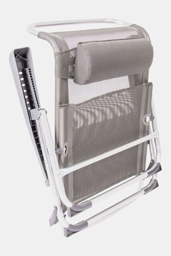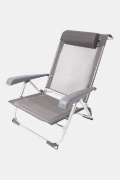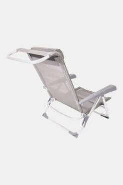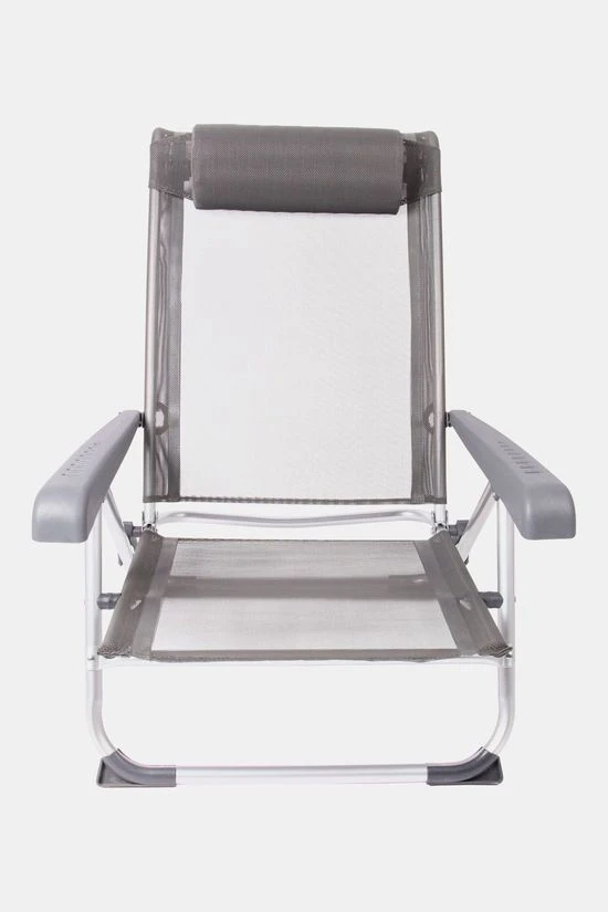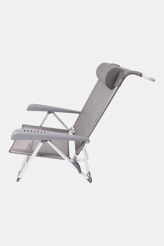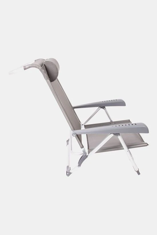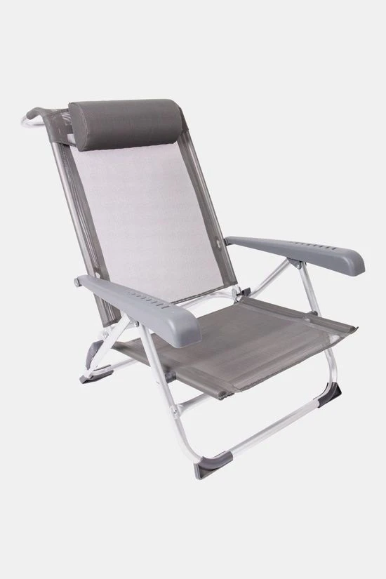 - Daarnaast is deze strandstoel voorzien van comfortabele armleuningen, stabilisatoren voor extra stabiliteit en een verstelbaar hoofdkussen.