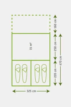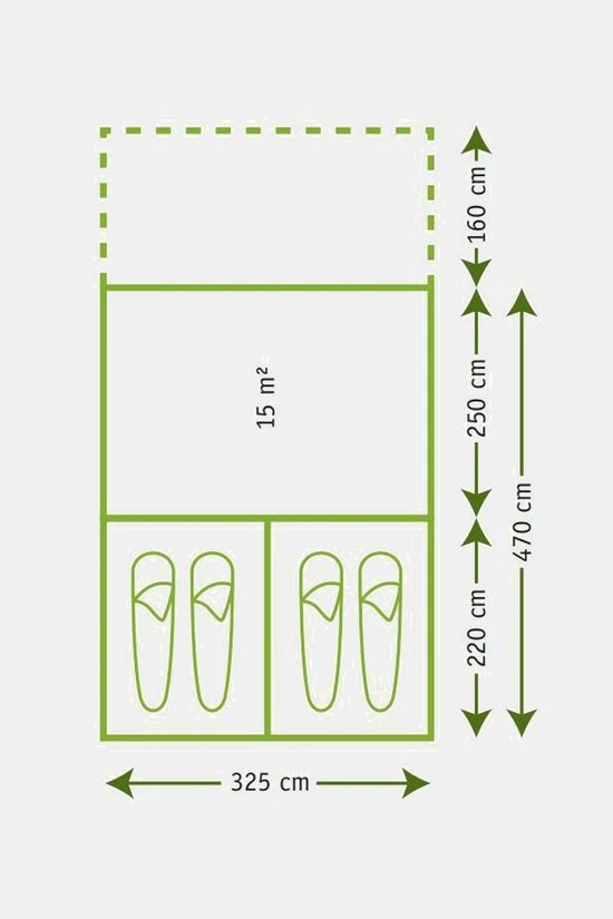- Het grondzeil heeft een opstaande rand van 25 cm. Zo hou je tocht, vocht en ongedierte mooi buiten de tent.